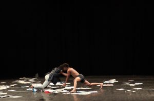 La danse la plus récurrente dans le duo est basée sur le touché ; l’attirance et le refoulement de deux corps qui s’entrechoquent, à la recherche de volupté mais enveloppés de barbarie. Puis nous est venue l’idée de disperser des papiers un peu partout sur la scène pour exprimer la multitude de promesses que les politiciens font au peuple et qui pourtant ne se voient jamais réalisées à la fin d’un mandat, par incapacité ou soit par manque de volonté